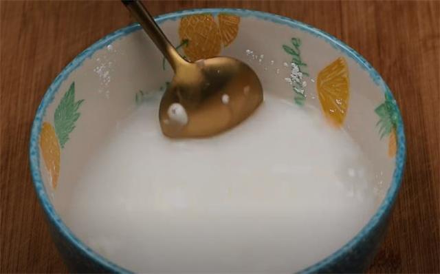 3.然后再準(zhǔn)備一個碗,碗中加入三勺淀粉,再加入適量的清水,用勺子給它攪拌均勻,攪拌成水淀粉,水淀粉不能太稀也不能太稠。