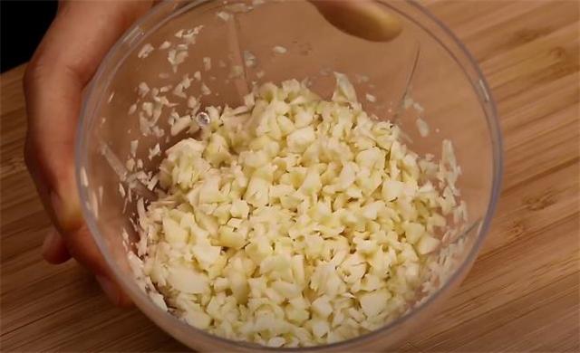 3.往拉蒜器里面放入幾個大蒜,輕輕幾下就拉成蒜末了,拉好之后備用。