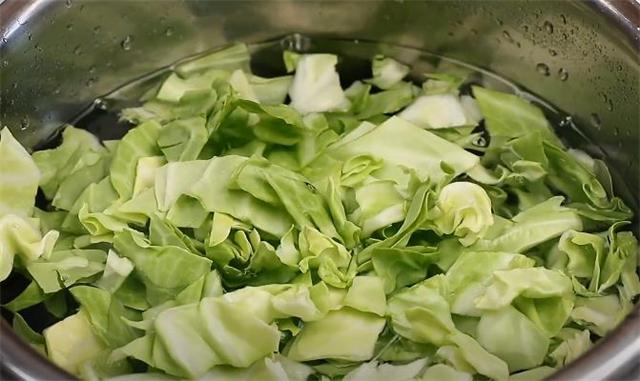 6.包菜也下鍋煮熟之后過(guò)一下涼水。