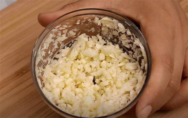 3.往拉蒜器里面放入幾個(gè)大蒜,拉成顆粒均勻的蒜末。