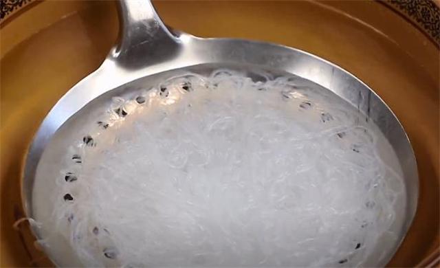 5.把提前泡好的粉絲下鍋煮熟,接著過(guò)一下涼水防止坨在一起。