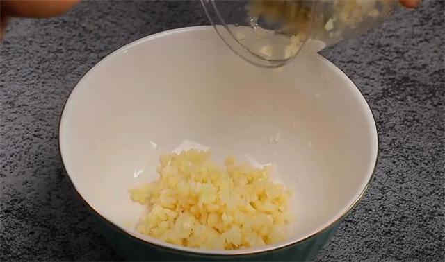 3.往蒜泥器里面放入幾個(gè)大蒜,非常快速幾秒鐘就給它打成蒜末了。