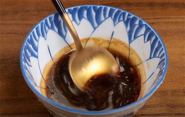 5.準備一個碗加入一勺生抽和兩勺陳醋,再加入適量食鹽和少許白糖,再加點白胡椒粉和一勺小磨香油,用勺子給它攪拌均勻。