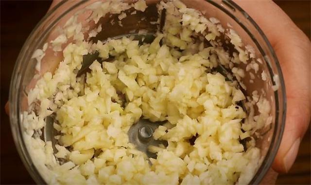 4.下面拿出我們的拉蒜器放入幾個大蒜,輕輕幾秒給它拉成蒜末,看一下拉的顆粒特別均勻。