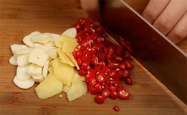 3.接著準備一點蒜片、姜片和小米辣。