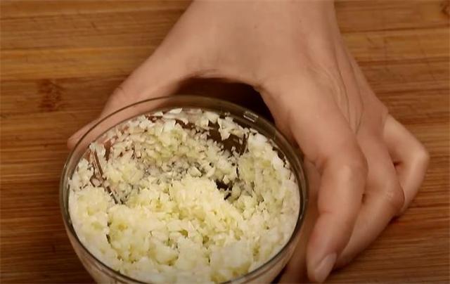 3.把大蒜放入拉蒜器,幾秒就拉成蒜末了。