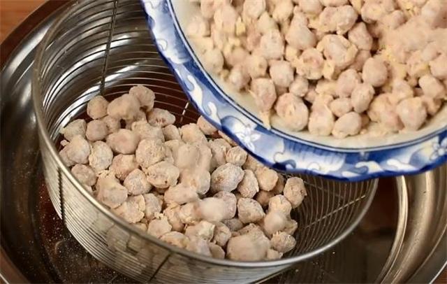 4.鍋里加入多一些的食用油,油溫五成熱下鍋炸,炸至金黃酥脆后撈出控油待用。