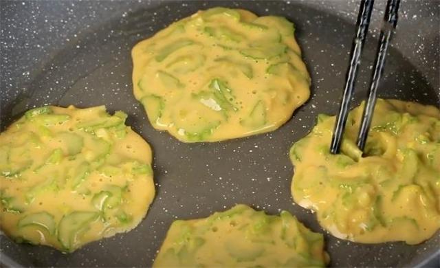 3.平底鍋預熱后刷點食用油,挖一勺芹菜糊用筷子抹成圓餅狀。