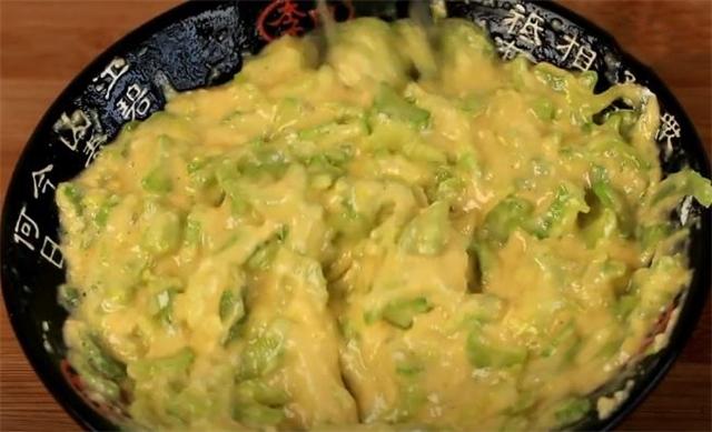 2.往切好的芹菜里面加適量的食鹽,十三香,少加點白糖提鮮,攪拌均勻后加適量的面粉和清水,攪拌成這樣的粘稠糊狀就可以了。