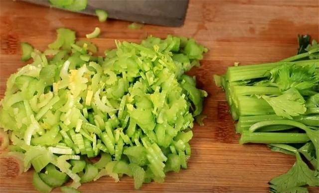 1.先把芹菜切成小碎塊,盡量切小一點,芹菜葉子就不要了,可以留著下面條。