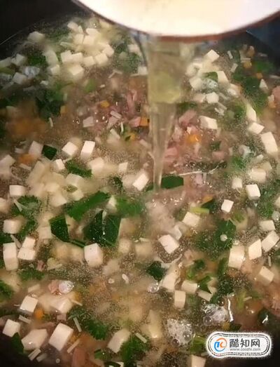 接著我們在鍋中倒入適量的水,水開倒入準備好的配菜(www.ws46.com)