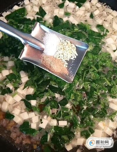 然后我們放入適量的鹽,雞精,胡椒粉,陳醋調味