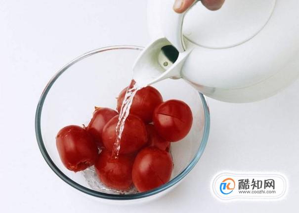 首先我們要選個(gè)頭比較大、比較成熟的果實(shí),然后用清水清洗干凈,然后用熱水澆在番茄上面,這樣子可以方便剝皮。