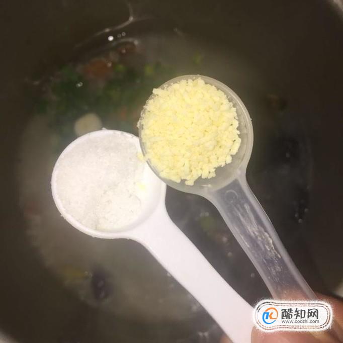接著把香蔥切成蔥花倒進鍋中,然后往鍋中加入一勺的鹽和一勺的味精并用勺子攪拌均勻,這樣就可以出鍋了。(www.ws46.cOm)