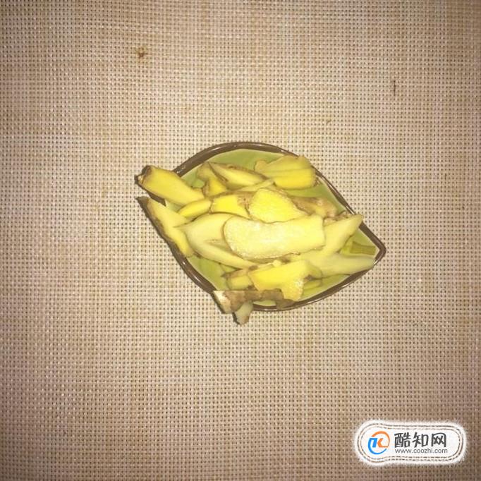 接著把生姜切成薄片,倒入鍋中。注意切生姜的時候,切得越薄越好。