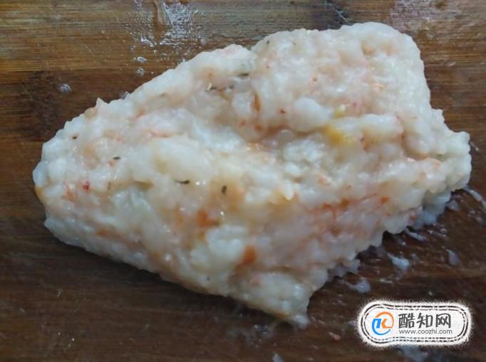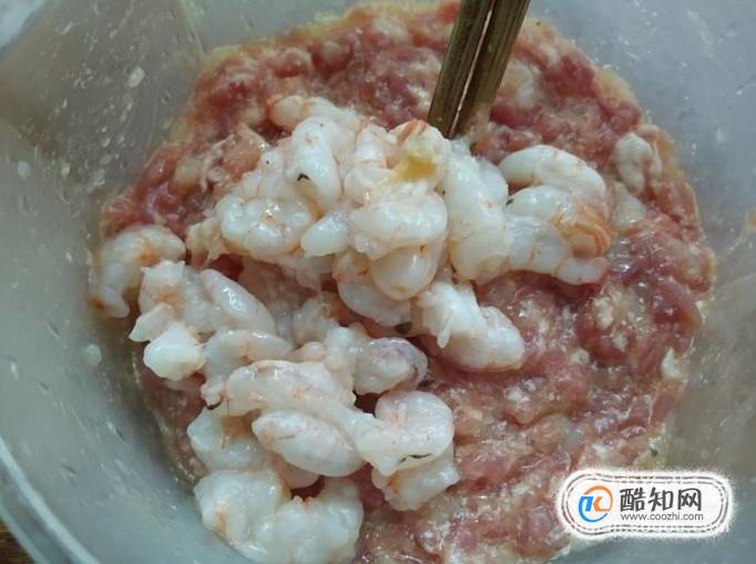 最后將之前保持完整的整個蝦放入餡料中,用筷子拌勻。