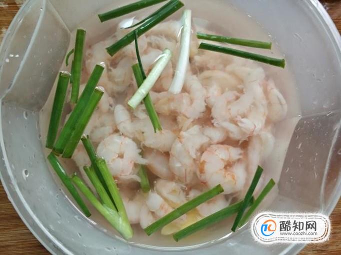 將蝦放入碗里,加入適量的水,然后將切好的蔥和姜放入,讓蝦泡10分鐘左右,去掉蝦的腥味。