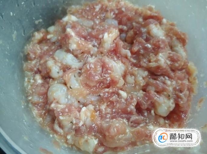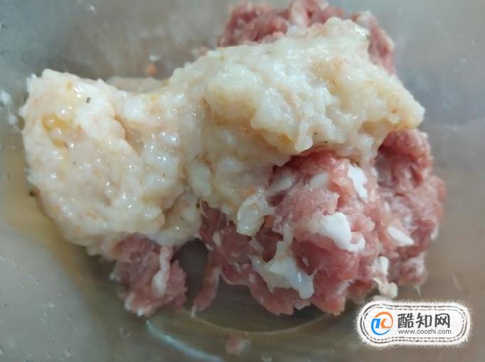 將剁碎的那部分蝦肉和剁碎的瘦肉一起放入碗里,然后拌勻。