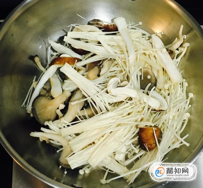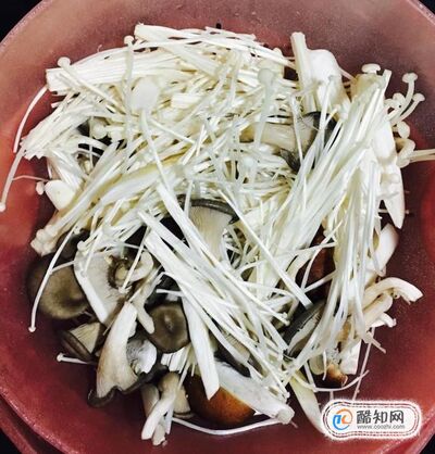 金針菇、松茸菇、平菇去除根部清洗干凈控干水分備用