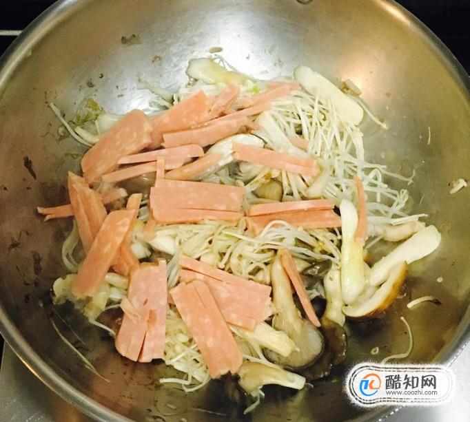 加入適量的蠔油和火腿絲翻炒均勻