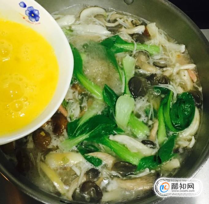 青菜擇去根分成單片清洗干凈控干水分,雞蛋兩個攪成蛋液備用
