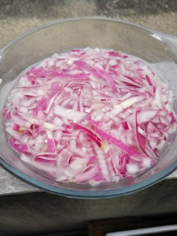 同樣的,我們把洋蔥剝碎之后,拿去泡水,洋蔥里的殺菌物質就會溶解在水里,浸泡一天一夜之后,我們把洋蔥末濾掉,可以拿著這些洋蔥水去噴灑植物殺菌。