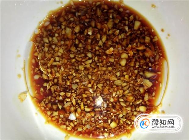 做配料,用適量的姜和兩瓣蒜頭剁碎,加入適量的花生油和醬油,攪拌均勻即可。 -