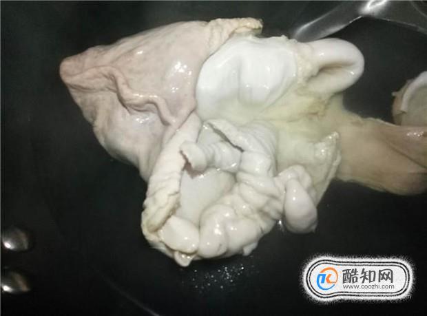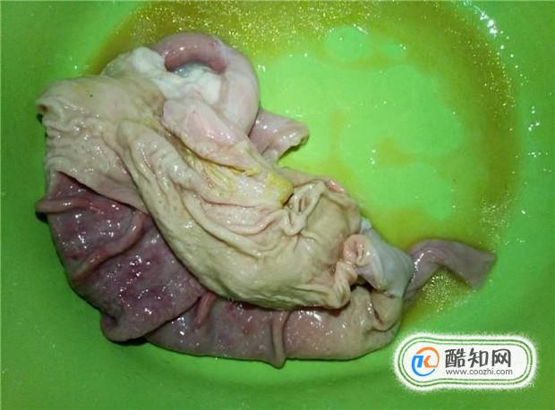 豬肚的清洗過程較復雜,前后大概清洗了五遍才干凈。第一步先用鹽醋不停搓,第二遍用面粉搓,第三步用花生油醬油搓,第四步再用面粉搓。直到豬肚沒有味道。 -