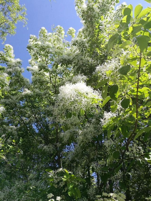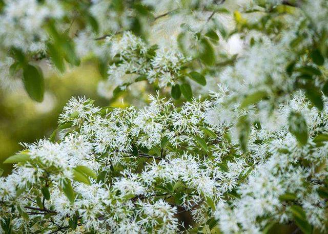 1、流蘇樹 流蘇樹又被稱為“四月雪”,從這一名稱中就能看出流蘇樹的花顏色有多白了。流蘇樹的花期在每年的3到6月,開花的時候枝頭布滿白色的形似流蘇的細小花瓣,整棵樹就像白了頭,也像一夜之間覆上了霜雪,非常好看。