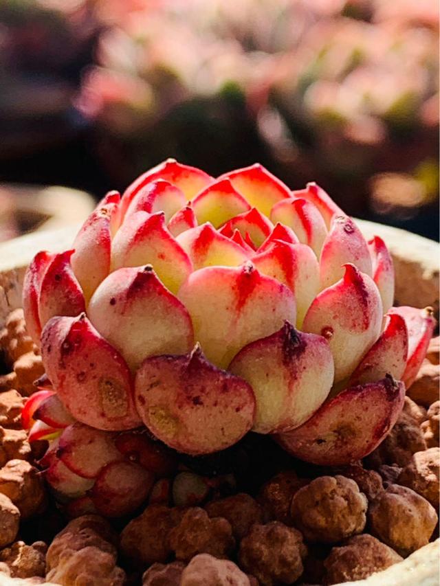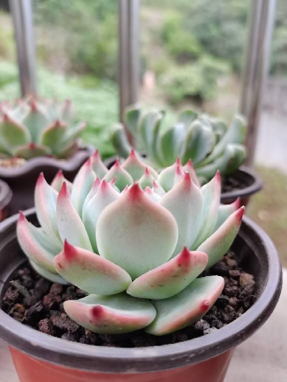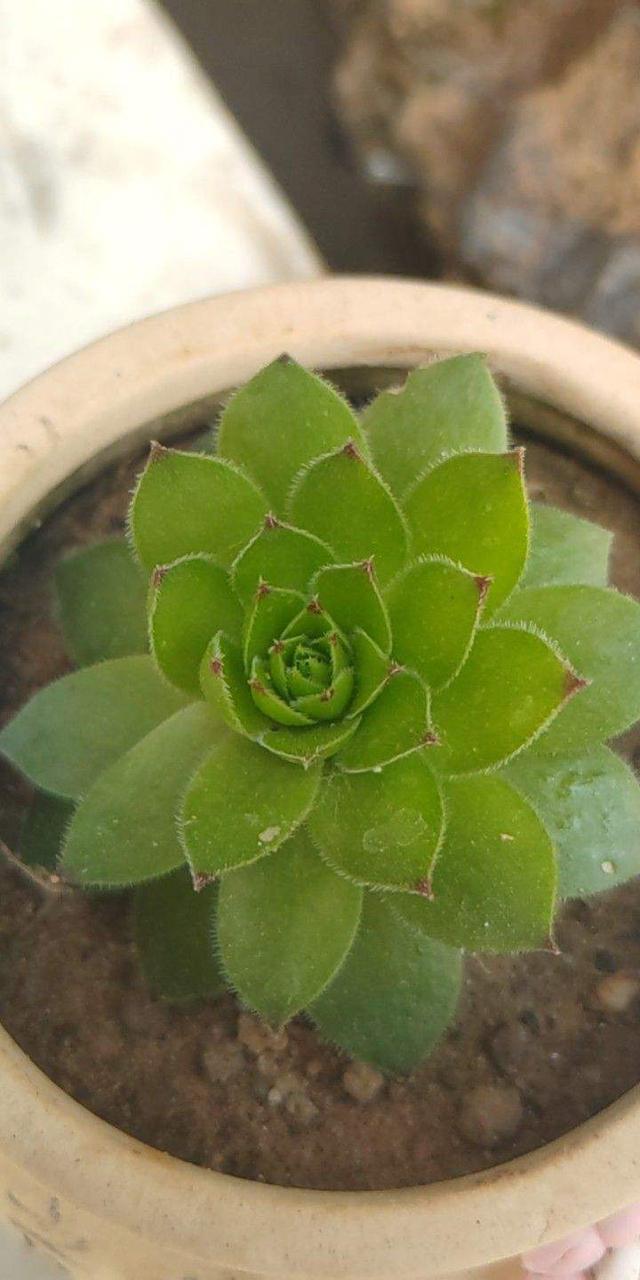 5、吉娃娃 吉娃娃同樣是呈現蓮花狀的多肉,但跟上面幾種的不同在于,它走的是可愛路線。吉娃娃的葉片比較鮮嫩細小,像娃娃的皮膚,嫩得反光。吉娃娃的葉片頂端有紅色的硬尖,與嫩綠的葉片相襯,有一種年娃娃的喜慶感。