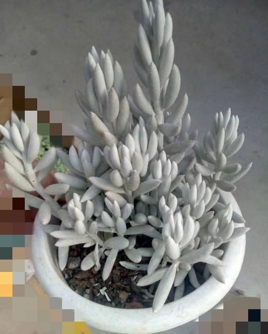 2、銀月 銀月是千里光屬的多肉,外形呈紡錘狀,葉片呈灰綠色,但又覆蓋著白色的蠶絲狀的毛。銀月多肉就像它的名字一樣,像一彎銀色的初月,看上去清冷純潔。