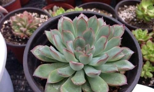 3、原始花月夜 原始花月夜跟雪蓮一樣都是石蓮花屬的植物,有一個類似蓮花的外形。不過不似雪蓮的清冷高潔,原始花月夜更顯得妖異嫵媚。它的葉片較細較長較尖,綠色的葉片邊緣帶著一圈紅色,非常標致。