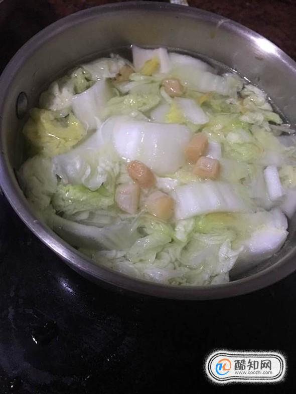 1,白菜半顆 2,肉醬適量 3,干貝適量 4,香菜少許 5,鹽少許 6,姜