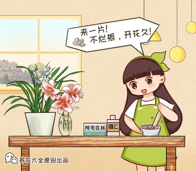 具體用法: 將1到2粒阿司匹林磨碎后,與1升左右的水進行配兌,搖勻后使它充分溶解,然后靜置一段時間讓它發酵。發酵完成后就可以用來澆花了。