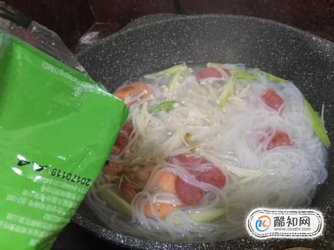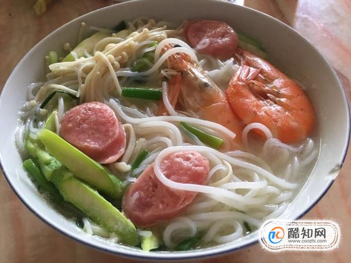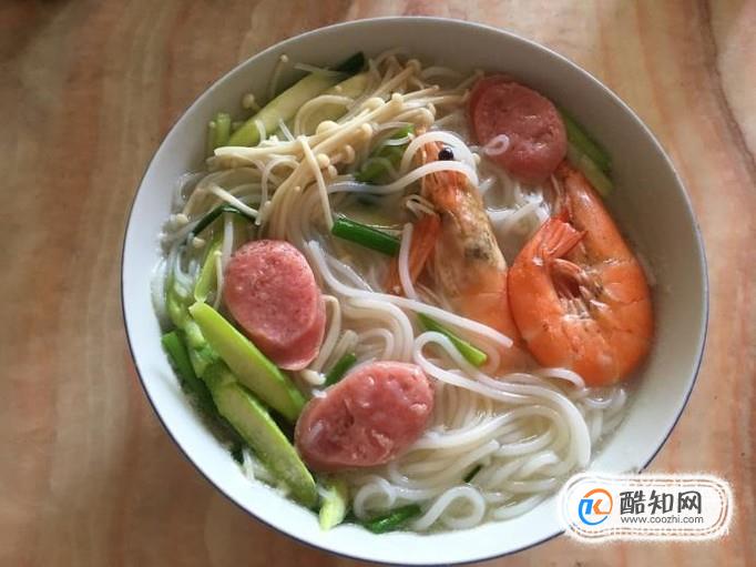 米粉湯是小編很喜歡的一種美味,接下來跟著小編一起看看如何制作吧 工具/材料1.米粉 2,蝦 3,熱狗 4,金針菇 5,蘆筍 6,蔥 7,鹽 8,味精 操作方法
