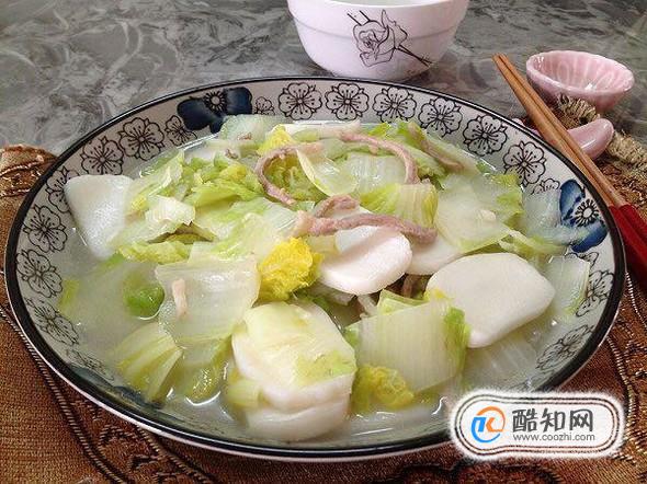 鍋中再倒入適量油,倒入白菜翻炒到變軟,倒入適量的熱水,燒開之后倒入年糕,慢燉到年糕變軟,倒入剛剛炒好的豬肉絲,加入少許鹽調(diào)味即可。