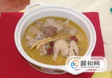豬小肚煲雞湯,豬小肚用鹽和生粉揉搓清洗干凈,雞肉洗干凈切成小塊,把雞肉塞進豬小肚,放入拍碎的胡椒,用牙簽把豬小肚縫合,放入高壓鍋,加入適量的水,大火燒開轉小火25分鐘 -