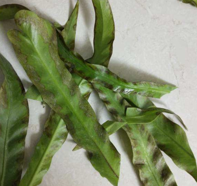 三、肥/水 鳥巢蕨是欣賞那波浪卷邊的植物,所以肥料的話用觀葉植物用的。上盆的時候,在基質里面混入適量的骨粉或者餅肥,這種肥料能讓你的鳥巢蕨葉色濃綠、生長良好~ 平時追肥的話,可以把放置一周的淘米水來澆,會有意想不到的驚喜~ 鳥巢蕨喜歡水但是害怕積水。 敲黑板:如果積水了,就很容易爛根。一定要注意避免積水才行。