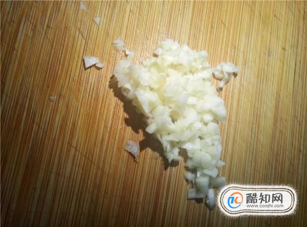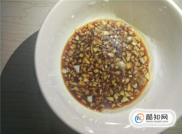 下面來(lái)弄一下沾排骨吃的醬料:蒜頭兩瓣,剁碎。加入碗中,然后加入適量的醬油和花生油,即可。
