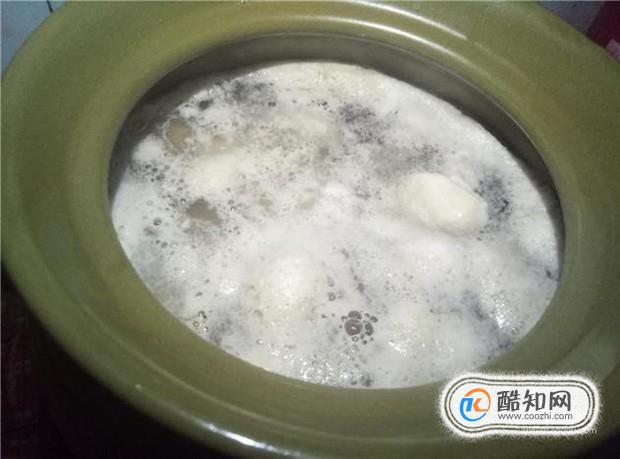 大火煮開(kāi)后,把浮起來(lái)的泡泡給撇干凈。然后轉(zhuǎn)小火燉。