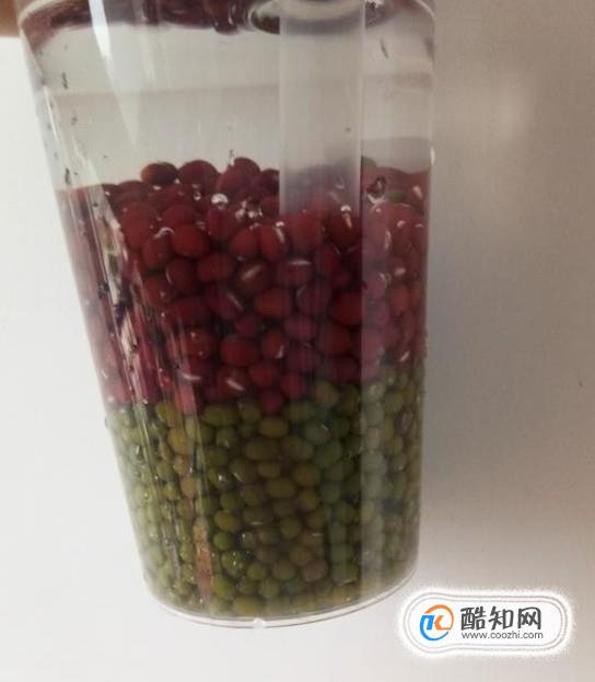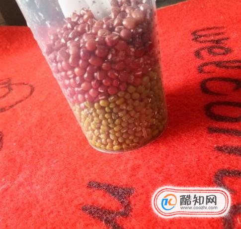 放入適量的紅豆綠豆在容器中,然后倒入清水,泡制一天。