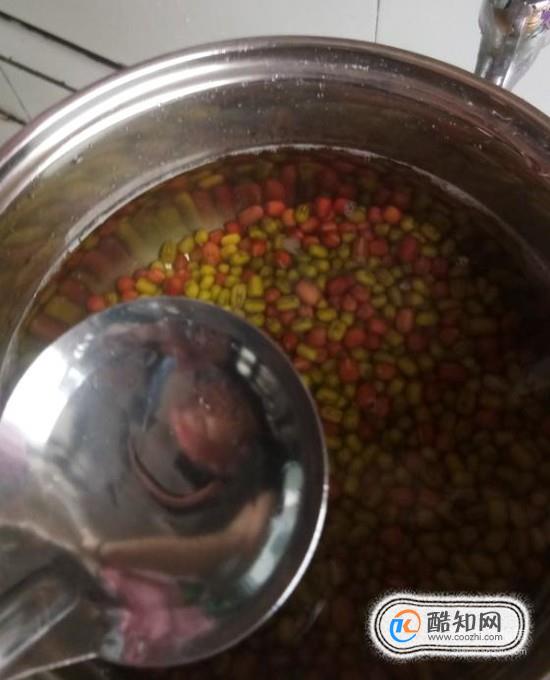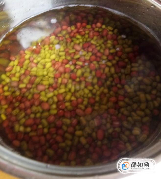 將容器中泡制好的紅豆綠豆洗凈,倒入鍋中。