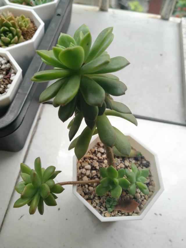 只要根據多肉的品種不同,做對正確的“砍頭”手法,多肉單頭立馬變多頭,蹭蹭長一盆。你的多肉如果屬于枝干長得過高,從來不長側芽,下面的葉片已經支撐不住多肉了,有搖搖欲墜的感覺,應該馬上去砍掉啦!要是你感覺多肉的莖部并不是很強壯,但又長得很高,這種情況,花花勸你還是不要進行“砍頭”比較好,反而會容易讓多肉的母株死掉。還有什么情況下的多肉需要“砍頭”呢?除了為了使自己的多肉美觀,例如錢串,就非常需要變多頭。如果多肉根部出現了腐病,還沒有蔓延到頂芽的話,我們也可以選擇剪掉多肉上面的莖稈,及時延長它的壽命。