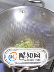 接著放入適量的食用油,待油冒煙,倒入姜絲和蔥花爆香。