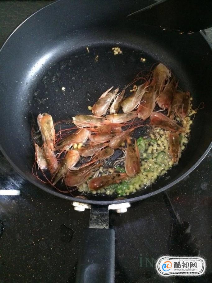 然后倒入處理好的蝦一起翻炒三分鐘。