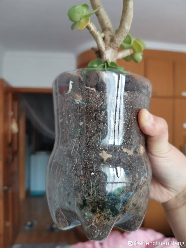 三、塑料瓶 平時的飲料和礦泉水喝完了以后不要扔掉,清洗干凈,大的塑料瓶可以裝自制花肥,小的就能直接當(dāng)小花盆!塑料瓶的壁很薄,算是最容易切割、改造的一種容器了,很多花友喜歡拿塑料瓶當(dāng)育苗盤,簡直不要太合適!