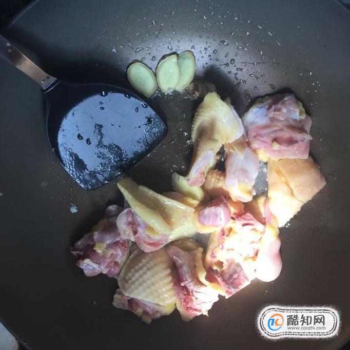 然后把雞肉倒入鍋中,翻炒五分鐘。