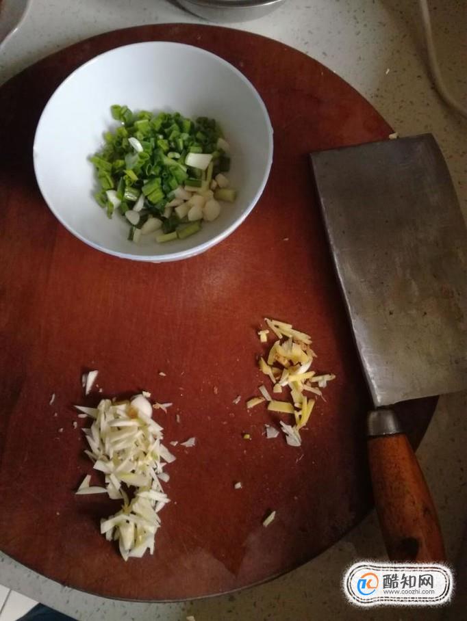 準備好各種佐料:鹽、蔥、老姜、蒜瓣、清油、砂仁果等。并將姜、蒜切絲備用,并將蔥切成蔥花狀。