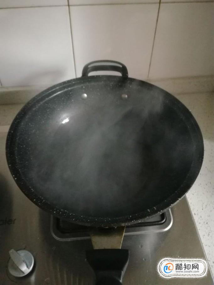 將鍋用清水洗干凈,大火燒干,然后倒上清油,轉小火將鍋燒滾。