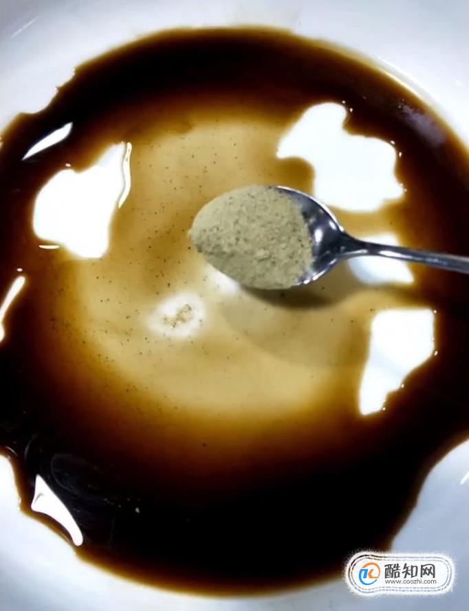 然后我們在一個碗中倒入適量的陳醋,胡椒粉,蔥花,香油,攪拌均勻備用
